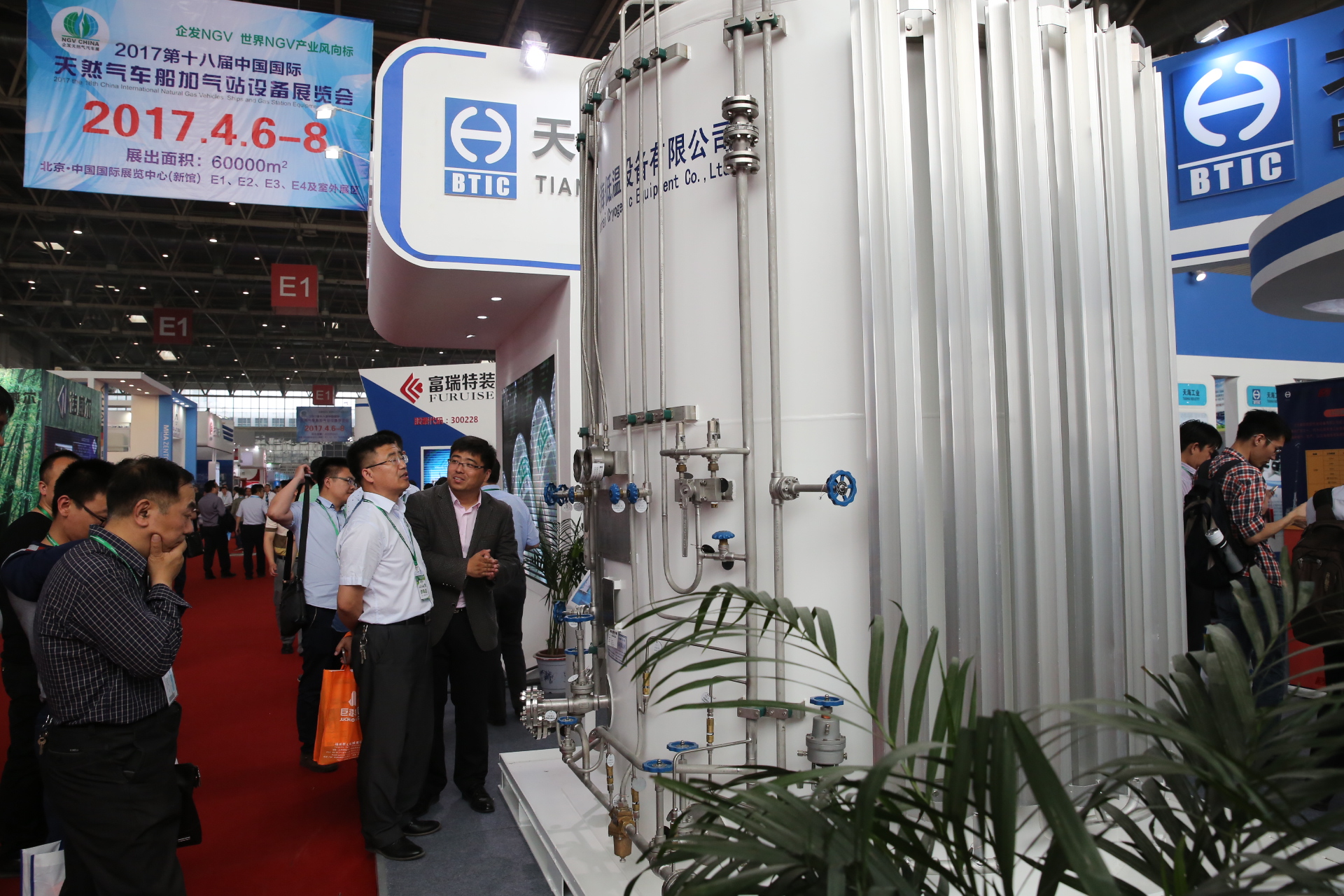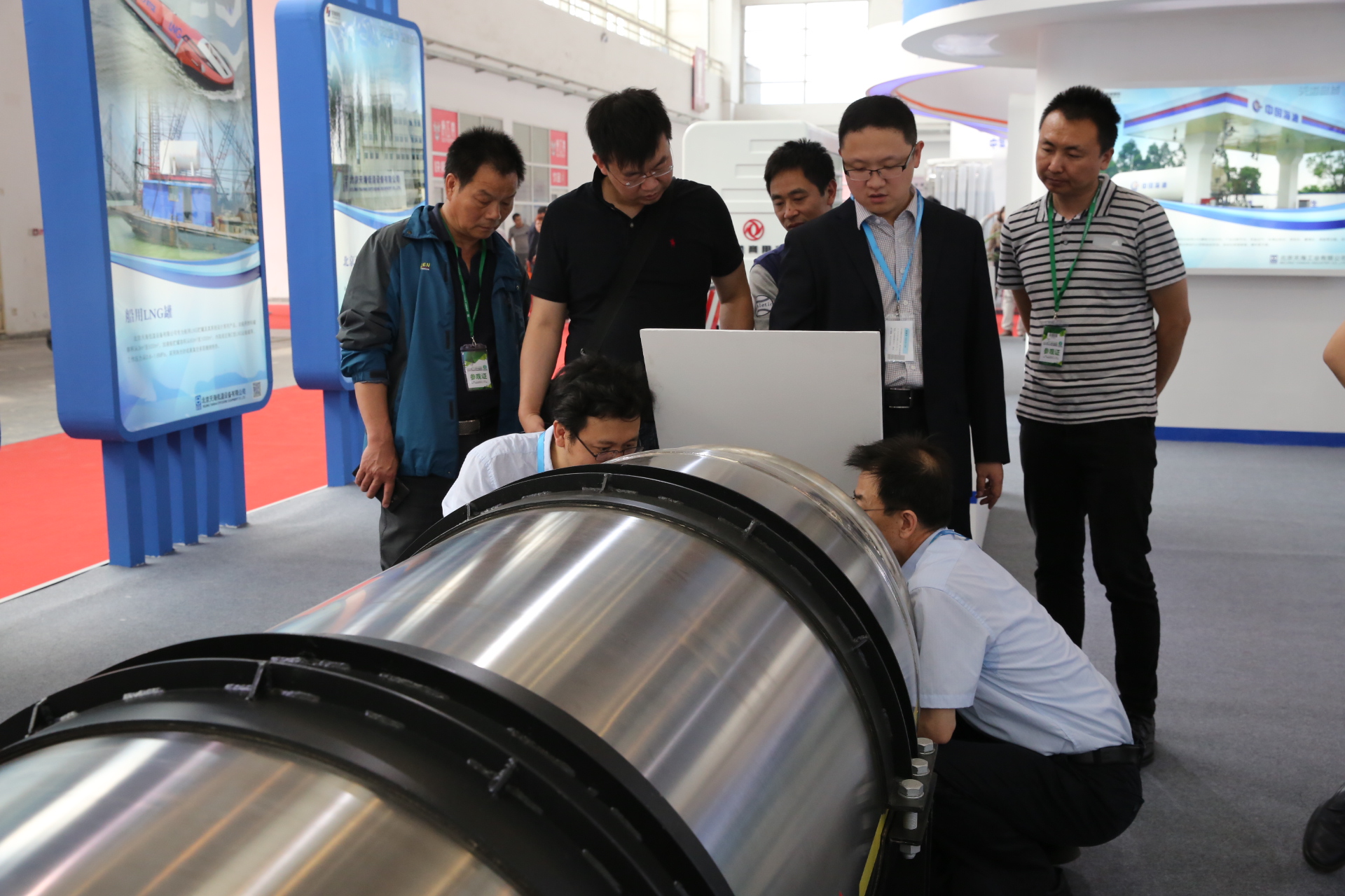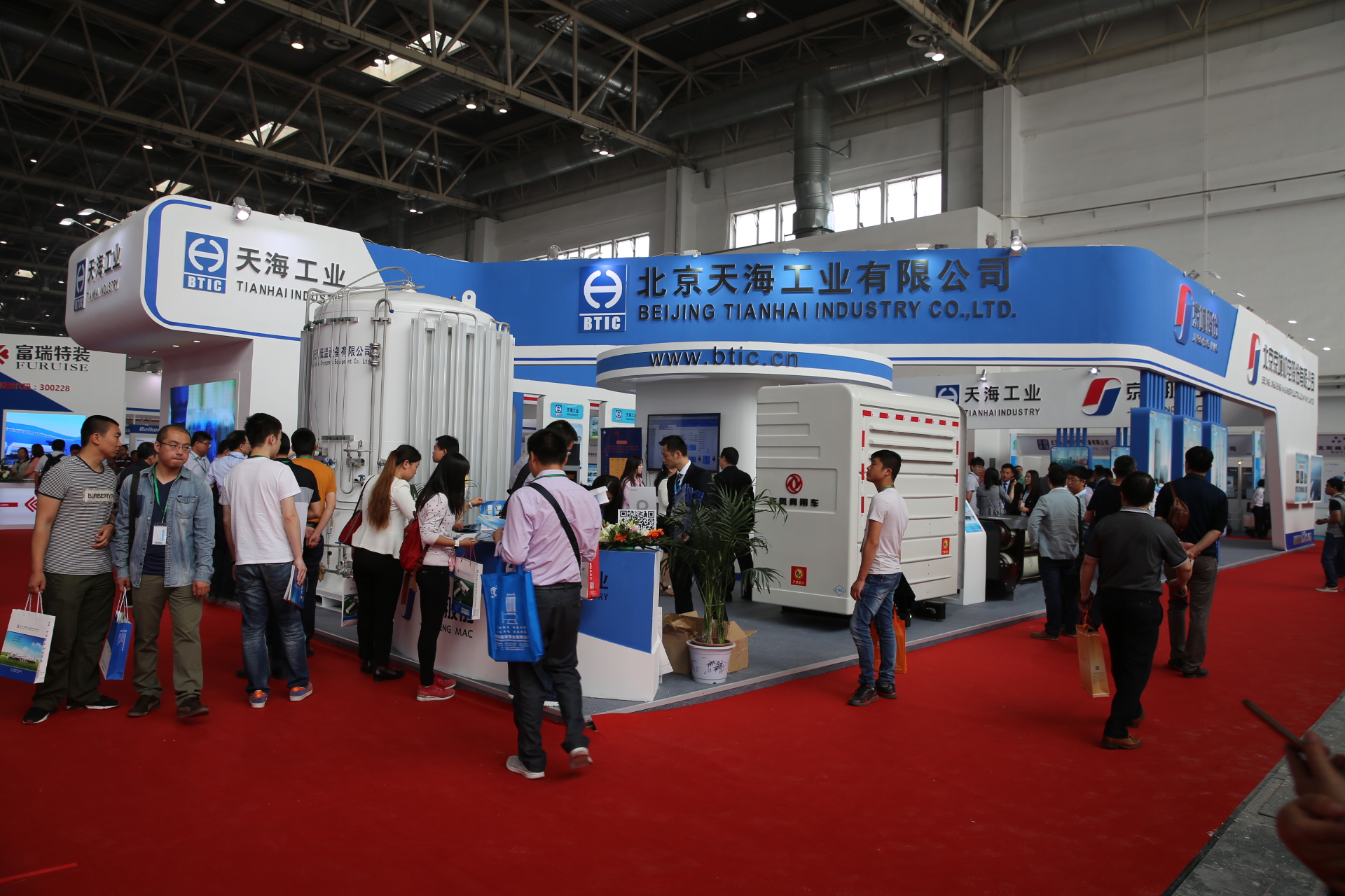 天海工业秉承高效、环保、节能的理念,致力于推动清洁能源燃料系统的发展,提供天然气储运领域全套解决方案。此次展会,不仅展出了公司全新研制的车用压缩天然气铝内胆碳纤维全缠绕复合气瓶(CNG-3型瓶)、车用压缩氢气铝内胆碳纤维全缠绕复合气瓶(CNG-3型瓶),还有公司最新研发的具有国内先进技术的LPP型车用LNG气瓶以及大直径车用LNG气瓶,更有应用于定检站维修站应用的真空降级维修设备、小型汽化站系统以及加气站物联网系统等多种全新产品。此外通过循环播放公司宣传片及精心设计的30多块展板全面展示了公司在天然气储运领域所能提供的系列产品及服务。